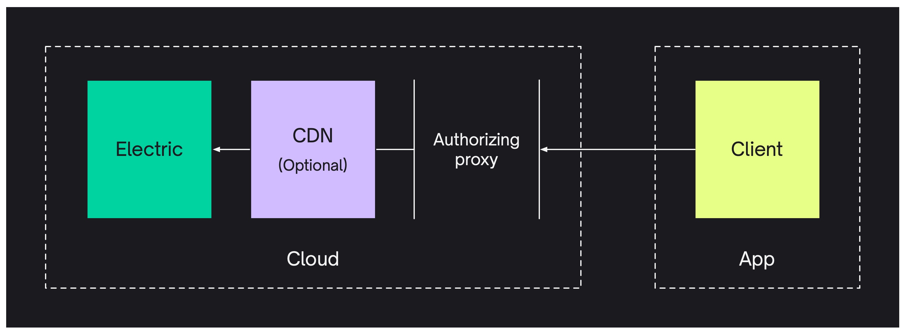 This defines a proxy that takes an HTTP request, reads the user credentials from an Authorization header, uses them to authorize the request and if successful, proxies the request onto Electric: