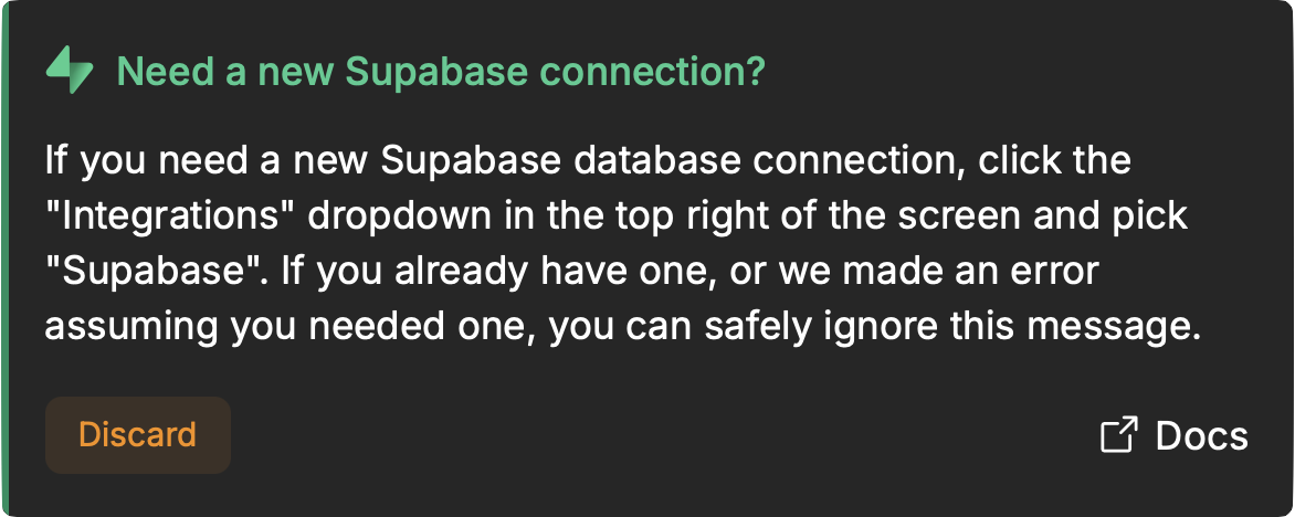 Now ... there is a solution built into the platforms for this. That is to connect your Supabase or Neon account, depending on which app builder you're using: